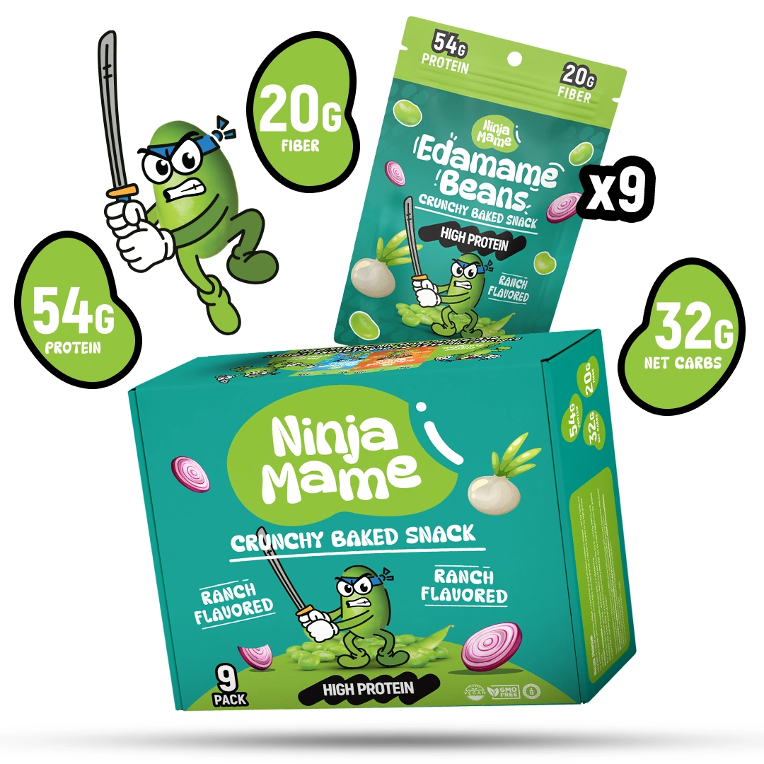 NinjaMame е солен протеинов снакс, който съчетава вкус, хранителна стойност и удобство в едно.