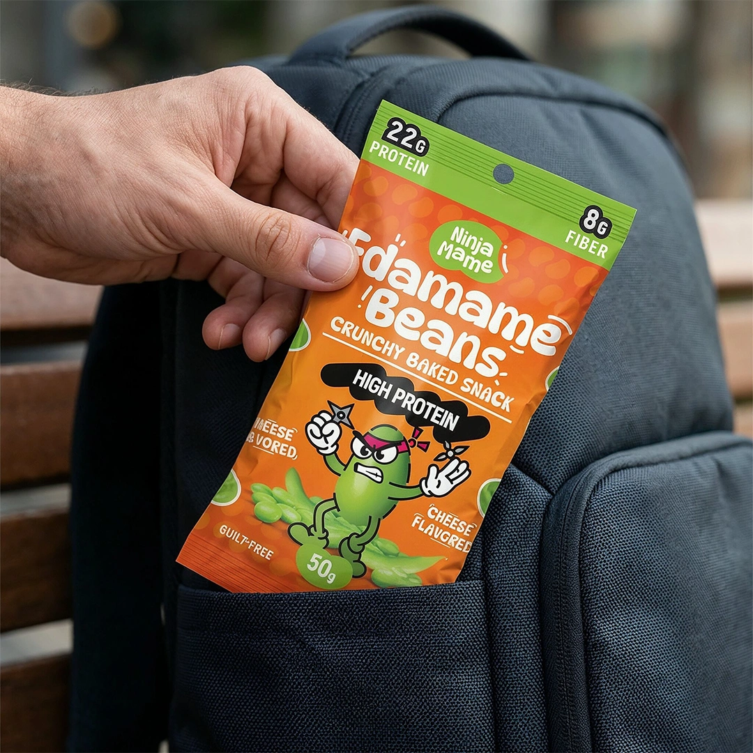 NinjaMame е солен протеинов снакс, който съчетава вкус, хранителна стойност и удобство в едно.
