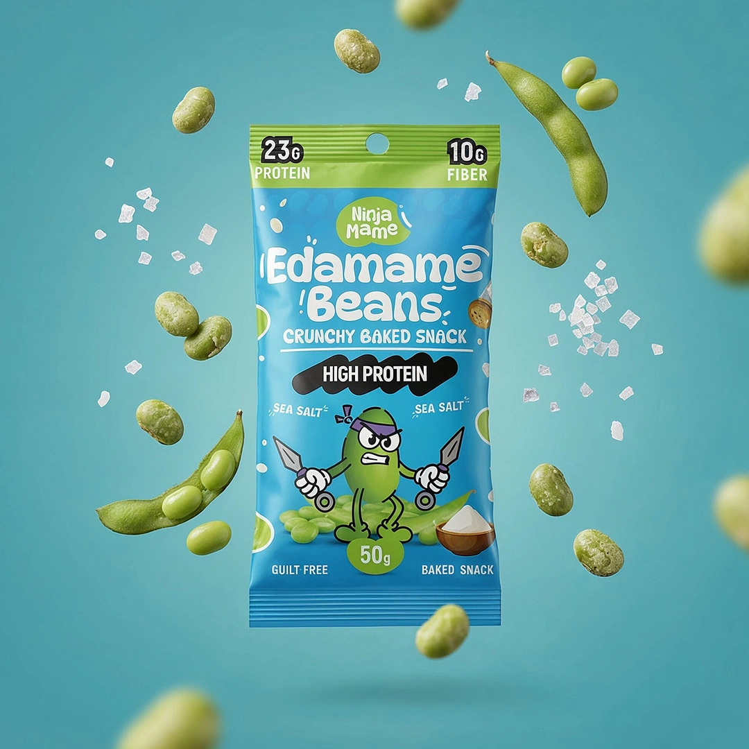 NinjaMame е солен протеинов снакс от печено едамаме - хрупкави цели зърна с високо съдържание на протеин, минимално обработени и създадени да бъдат наистина вкусни.